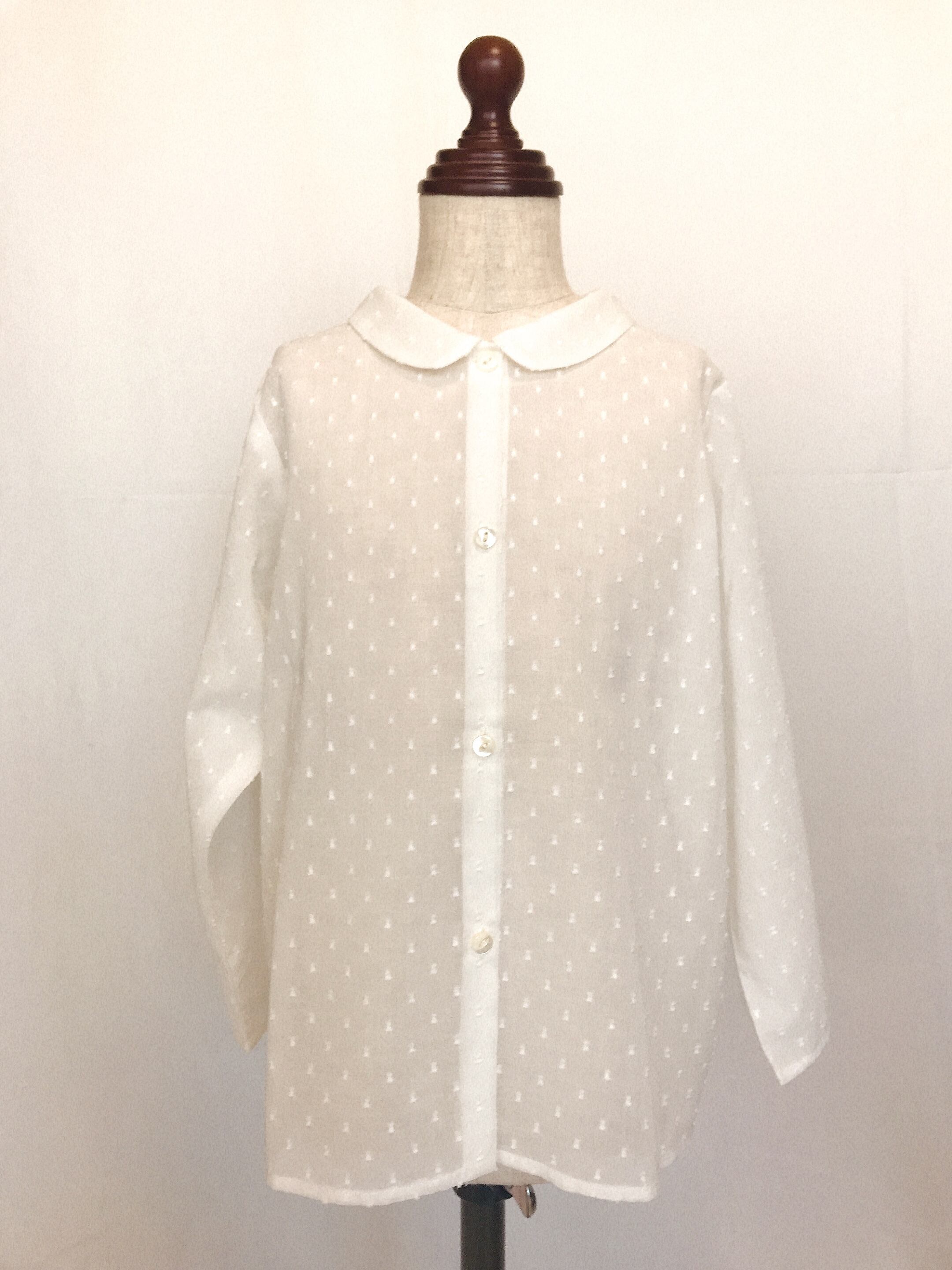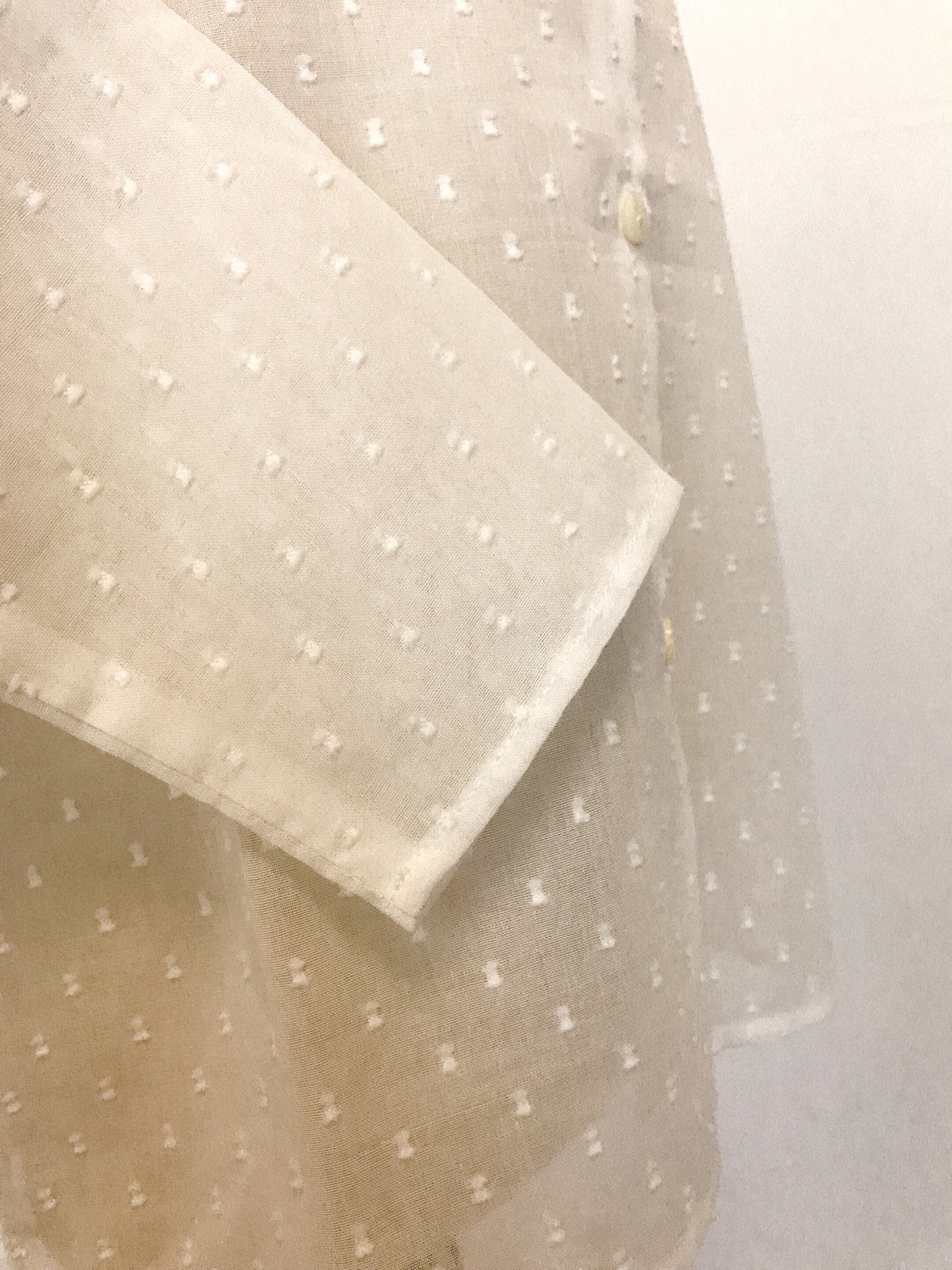 薄手で透け感があります。フランスの貝ボタンを付けました。